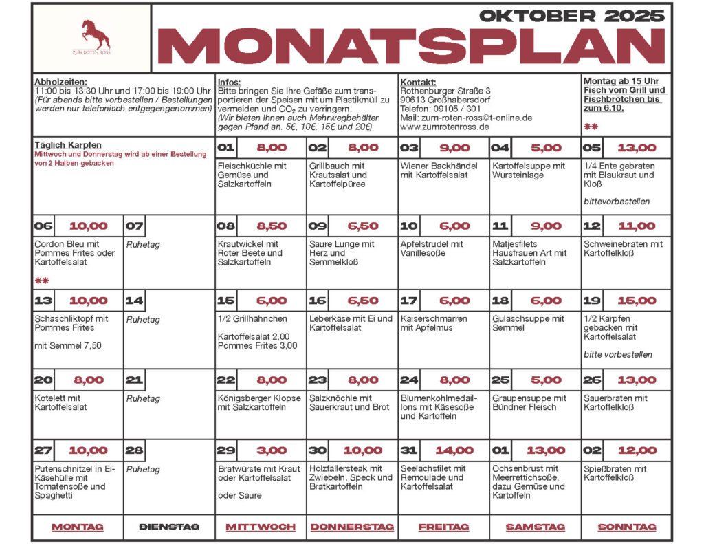 Abwechslungsreiche und wohlschmeckende Tagesgerichte zum Abholen